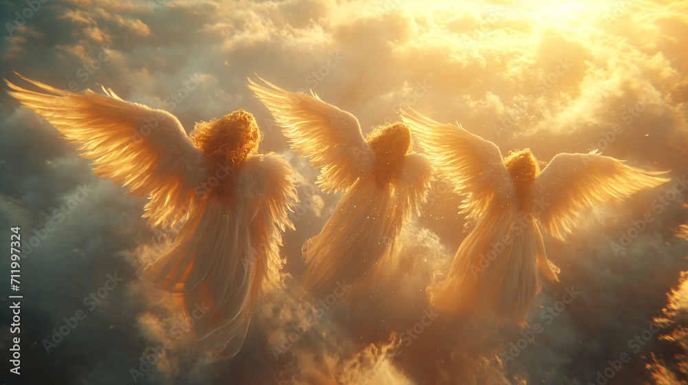 Anioł - Angels fly in a heaven made of clouds. #711997324