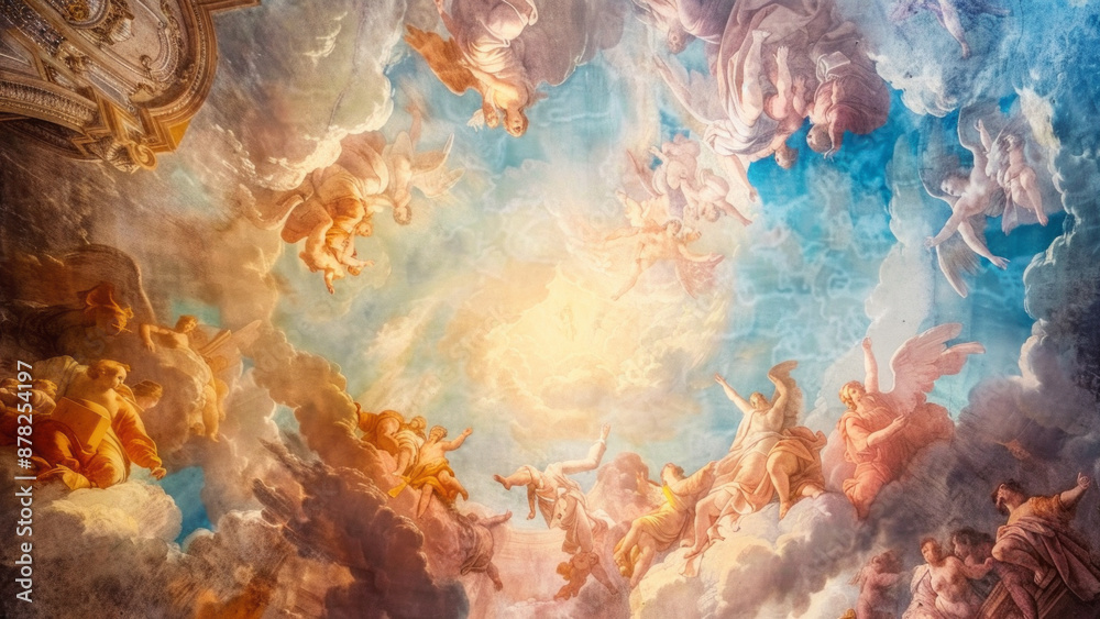 Anioł - Painted ceiling with the image of angels in heaven #878254197