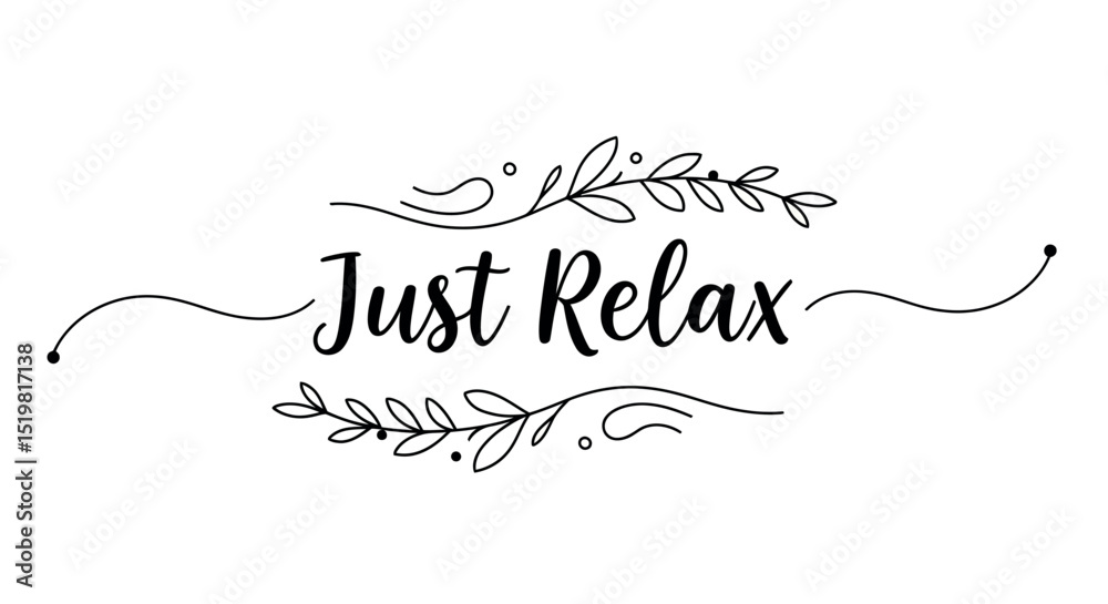 • Just relax calligraphy with decorative floral elements on white background
