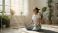 Relaks - Woman meditating in sunlit room with plants yoga relaxation #1575477694