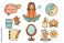 • Set of mental health and wellness icons. Mindfulness, meditation and self care concept. Yoga, relax, journaling, balance and positive thinking. Vector cartoon illustration pack.