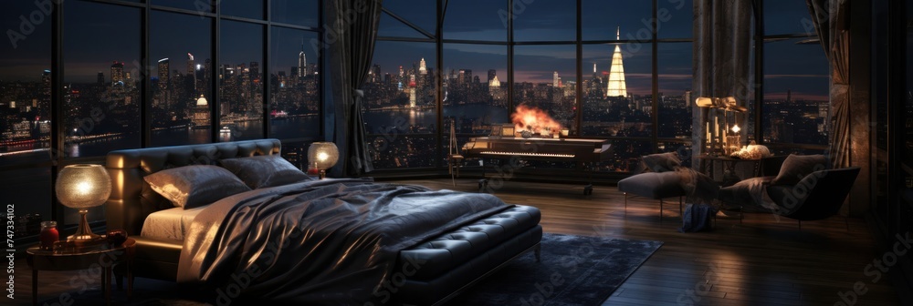 Relaks - Bedroom With Stunning City View Generative AI #747334102