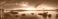 • Panoramic Photo of Lake Tahoe, Boulders on Shore, Sunset with Blue Sky and Orange/Purple Clouds, Starry Night, Milky Way