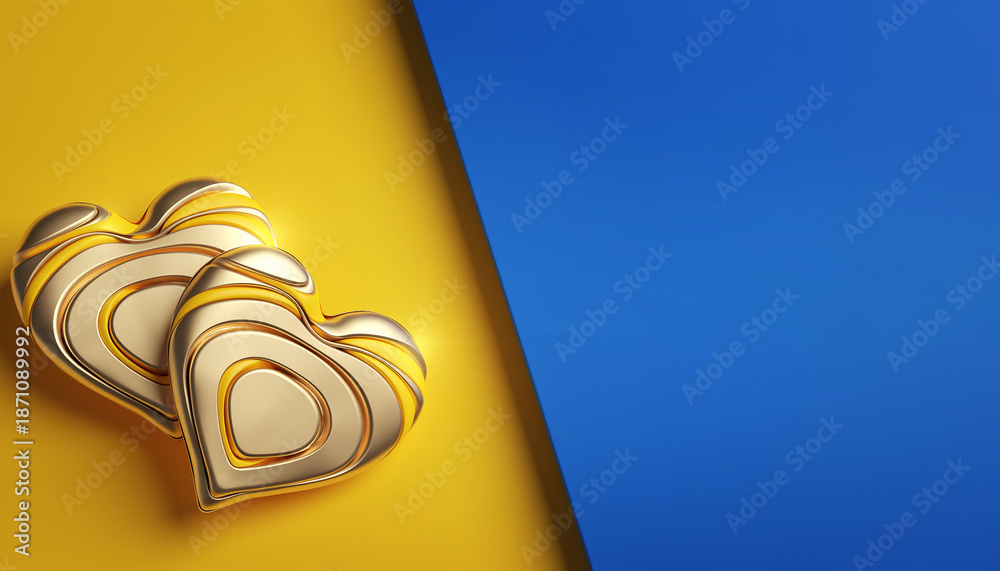 Trendy - Serce walentynkowe w odcieniach żółtego i złota na niebiesko żółtym tle. Symbole dnia zakochanych. #1871089992