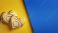 • Serce walentynkowe w odcieniach żółtego i złota na niebiesko żółtym tle. Symbole dnia zakochanych.
