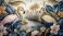 • Tropikalny las w flamingami. Tapeta, tło, grafika w stonowanych kolorach