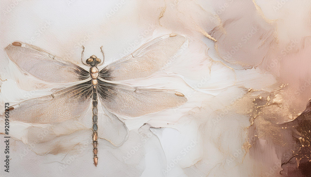 Trendy - Tekstura, ważka malowana farbą w odcieniach brązu, tapeta generative ai #920960273