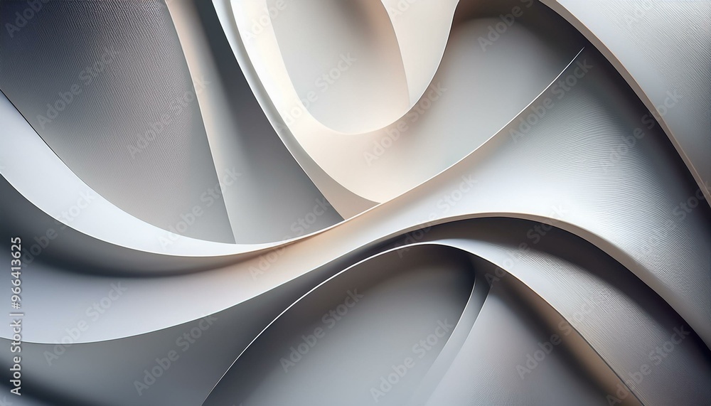 Trendy - Abstrakcyjne trójwymiarowe białe tło z zaokrąglonymi falującymi kształtami #966413625