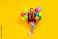 Instrumenty muzyczne - Lovely young girl holding colorful balloons on a cheerful yellow background, dressed in a stylish... #1888923383