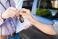 • Closeup of driving instructor handing car keys to adult learner after lesson, emphasizing independence and vehicle access