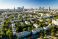 • Piękny panoramiczny widok z drona na centrum nowoczesnej Warszawy z sylwetkami drapaczy chmur. Na pierwszym planie Muranów – zielona dzielnica Warszawy.