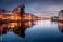 • Gdańsk after sunset, a view of the Motława River, Gdańsk Granary and Gdańsk Old Town. Gdańsk po zachodzie słońca, widok na Motławę, Spichlerz Gdański i gdańską starówkę w odbiciu Motławy.