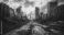 Fototapety Miasta - Postapokaliptyczne miasto z wyraźnymi oznakami zniszczenia, w tym zrujnowane budynki, uszkodzone... #961495472