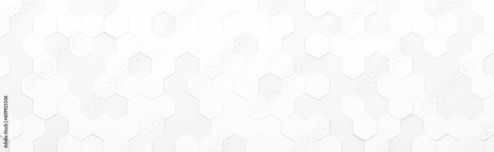 Fototapety Wzory - Widescreen hexagonal background with white hexagons, abstract futuristic geometric backdrop or... #609925506