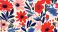 • a red, white, and blue flower pattern on a white background with blue and red flowers on a white background.
