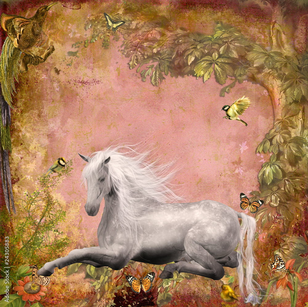 Fototapety Bajki - koń w lesie #24305883