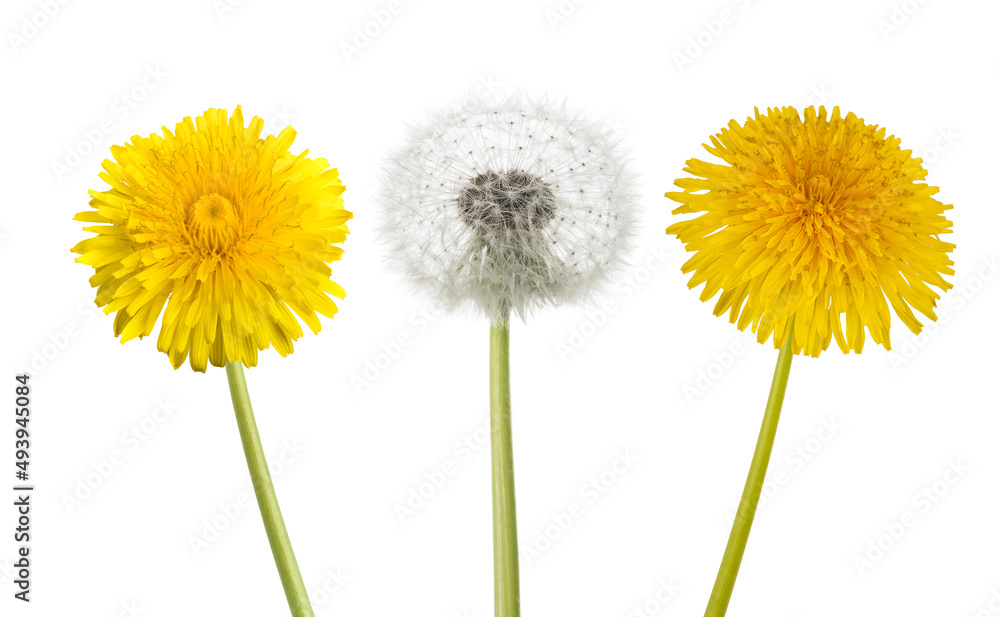 Fototapety Dmuchawiec - Dandelion flowers with blowball #493945084