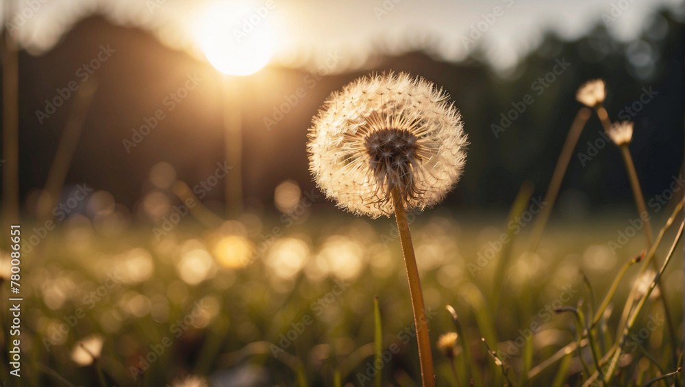 Fototapety Dmuchawiec - Flor Diente de León a Contraluz al Caer el Sol. #780086651