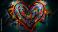 • Vibrant graffiti heart art with dripping paint and abstract background