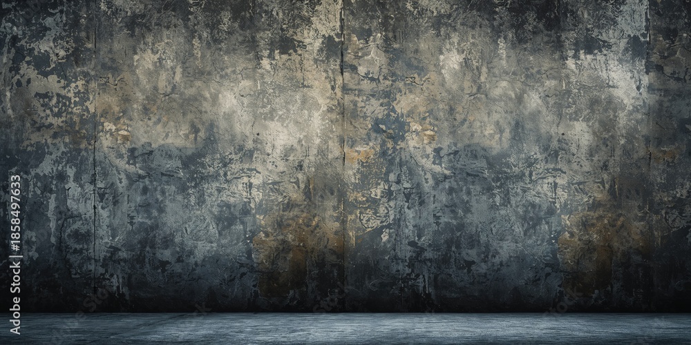 • Concrete wall with peeling paint texture serving as a backdrop for street art or graffiti, urban decay focus