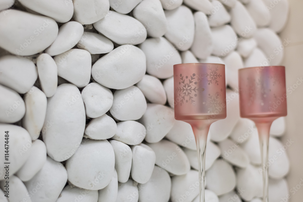 Fototapety Kamień - Białe kamienie na ścianie lustro #114474484