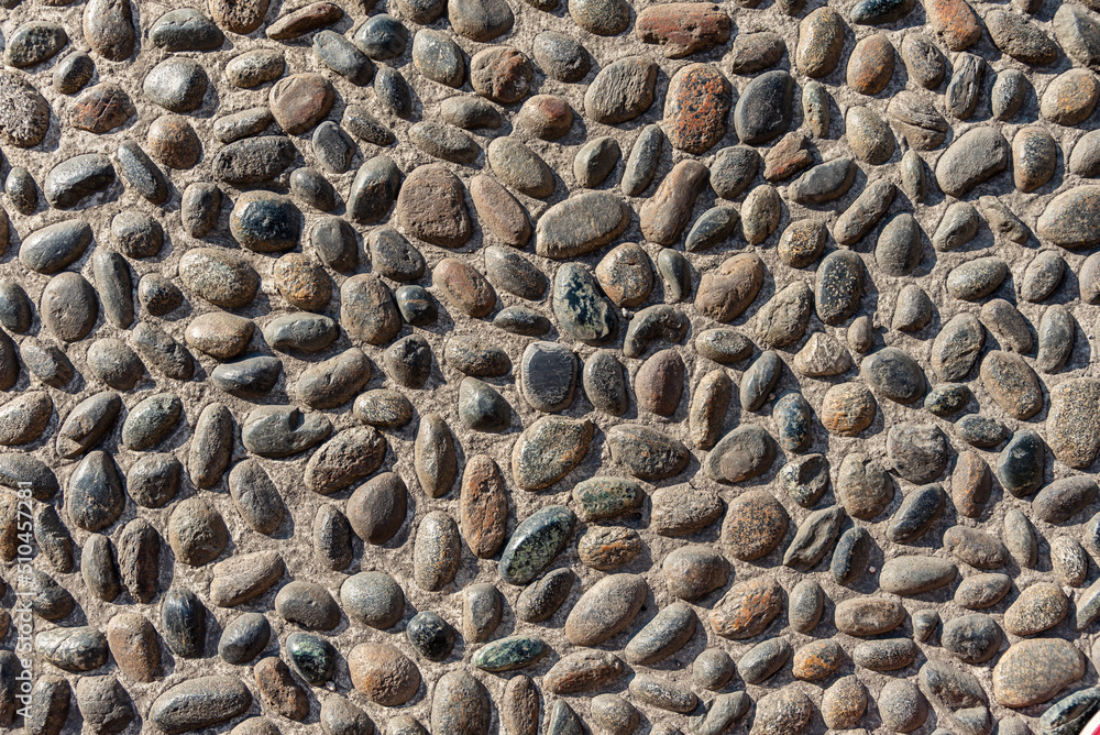 Fototapety Kamień - Ulica z kamienia naturalnego, kamienie otoczaki w betonie #510457281