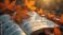 • Sheet music surrounded by colorful autumn leaves outdoors