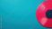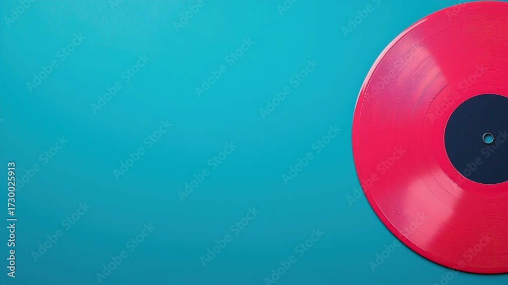 • Red vinyl record on blue background top view pink vinyl record on turquoise wall retro music concept with vibrant color contrast and nostalgic aesthetic