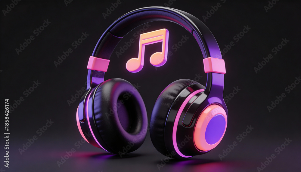 Fototapety Muzyka - Stylish 3D headphones icon representing music streaming, audio apps, podcasts, entertainment... #1858426174