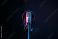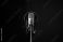 • Studio microphone and pop shield on mic in the empty recording studio with copy space. Performance and show in the music business equipment.