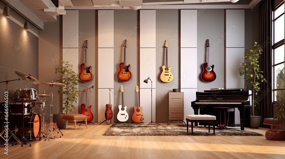 Fototapety Muzyka - Modern studio music interior design, generated by AI #646916503