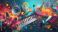 • Abstract 2D background with music symbols, treble clefs, and instruments creating a dynamic classroom environment, hyper-real, sharp images, high quality