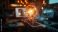 • W skupieniu nad swoją pracą, biznesmen trzyma w dłoni mały, lśniącą żarówkę, symbolizujący nową, innowacyjną ideę.