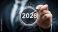 Biznesmen rysujący miernik postępu z datą 2026 - symbol rozwoju, efektywności i strategii na nowy rok