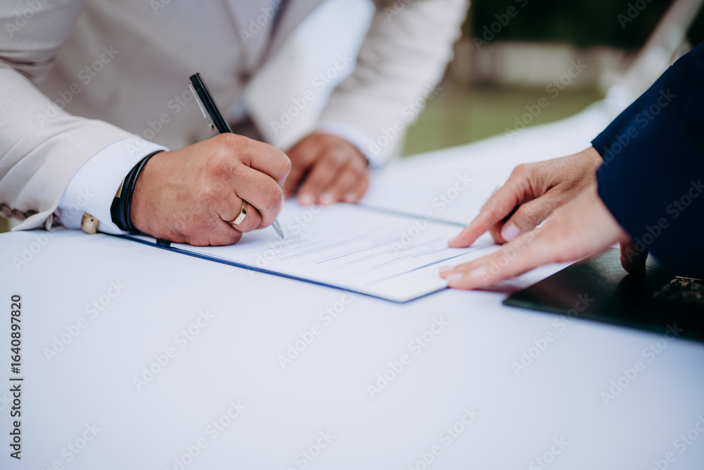 Fototapeta do Biura - Dłoń podpisuje papiery #1640897820