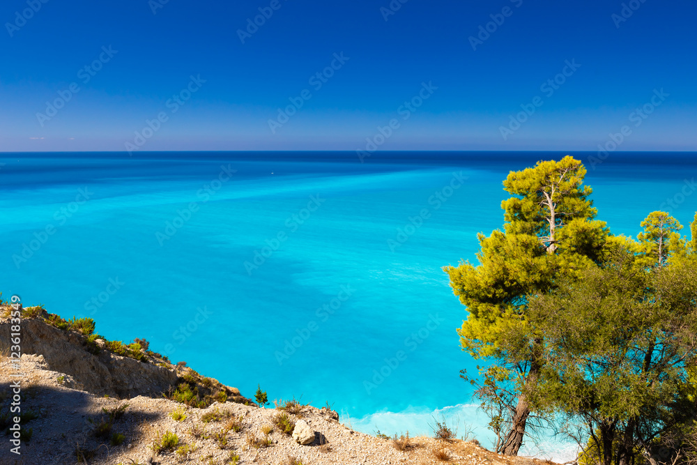 Fototapeta do SPA - Krajobraz letni, grecka wyspa Lefkada, niebieski kolor, relaks i wypoczynek, Morze Jońskie, tło... #1236183549