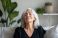 • Starsza kobieta z siwymi włosami relaksująca się w domu, spokój i harmonia w domowym wnętrzu