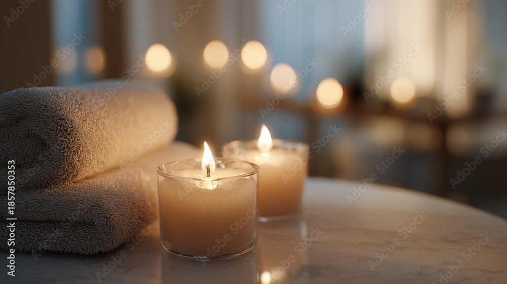 Fototapeta do SPA - Relaksujące spa z aromatycznymi świecami #1857850353