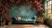 • Kanapa przed błękitnym ścianą pokrytą kwiatami