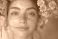 • Portret pięknej kobiety w spa. Kobieta z kremem na twarzy i wianku z różowych kwiatów na głowie.