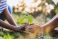 • mother with children helping planting tree in nature for save earth. environment eco concept