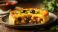 • Delicious savory pie with a golden crust, filled with seasoned meat, corn, and topped with olives and herbs for a flavorful meal.