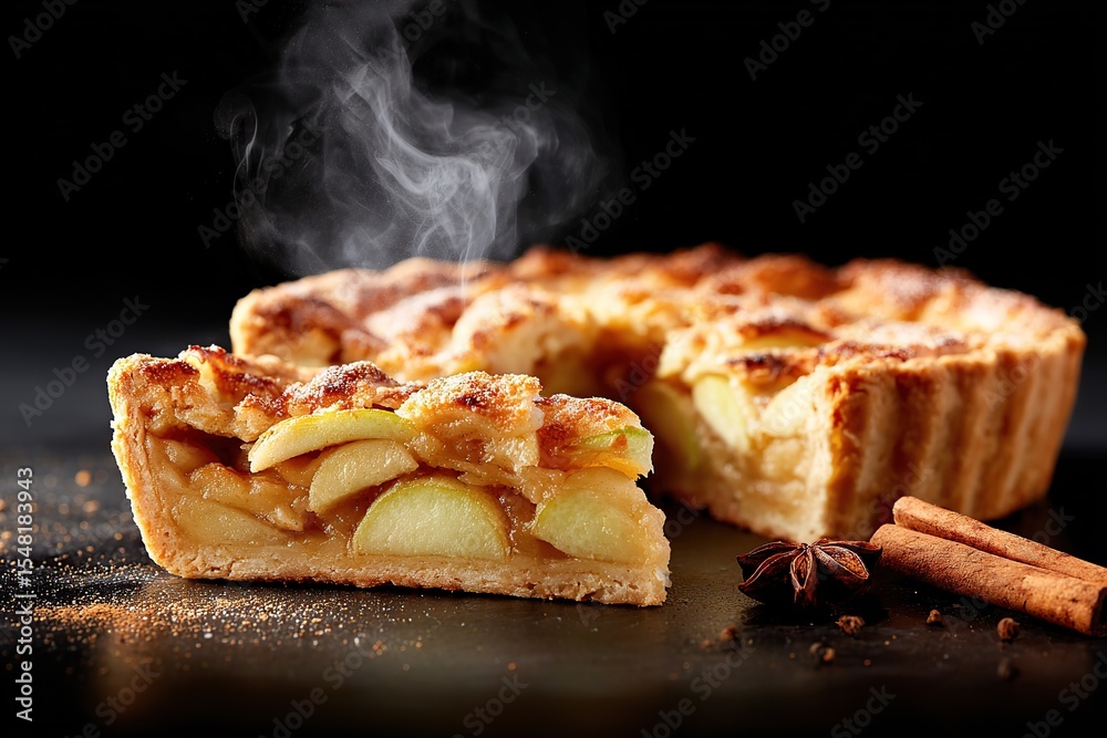 Fototapeta do Gabinetu Weterynaryjnego - Delicious apple pie with golden crust and steam rising, showcasing fresh apple slices #1548183943