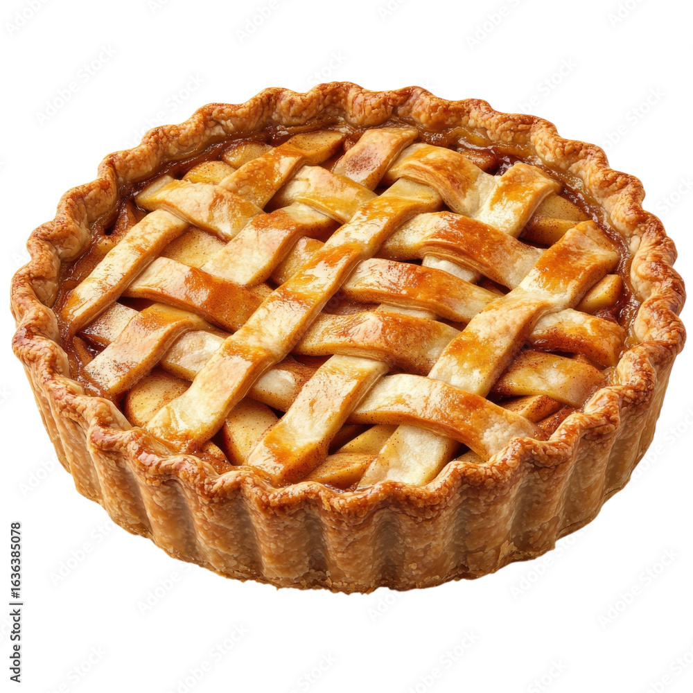 • Delicious homemade apple pie with lattice crust, a classic dessert for Thanksgiving, holidays on transparent background