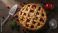 • Festive apple cranberry lattice pie on rustic wooden table