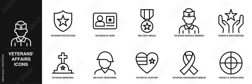Fototapeta do Gabinetu Weterynaryjnego - Veterans Affairs Line Icon Set #1859976244