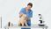 Fototapeta do Gabinetu Weterynaryjnego - Veterinarian clinic scenes set. Female vet examining cute puppy dog. Doctor performing surgery.... #1880727813