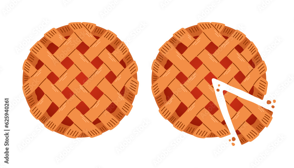 Fototapeta do Gabinetu Weterynaryjnego - Pie top view. Cooked tasty round food pastry pie desserts exact vector illustrations #625940261