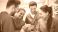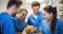 • Group of Veterinarians examines the dog at the clinic. Created with Generative AI technology.