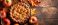 • Autumn themed homemade apple pie or tart with a copy space image in the background conveying the essence of the fall season